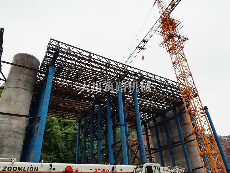 特點(diǎn):現(xiàn)澆梁支架平臺(tái)的跨度大,高度高,施工現(xiàn)場(chǎng)場(chǎng)所地非常有限,在局促的場(chǎng)地中和其他施工隊(duì)伍的場(chǎng)地需交叉作業(yè)。安裝過(guò)程中因拼好的主梁沒(méi)有平整的場(chǎng)地放置,需要在拼好的貝雷片上面拼裝對(duì)接;有些梁也因場(chǎng)地原因致使吊機(jī)沒(méi)有好的停車位,不能整根梁吊裝,采用半根梁吊裝在空中對(duì)接方式完成安裝,施工難度較大。